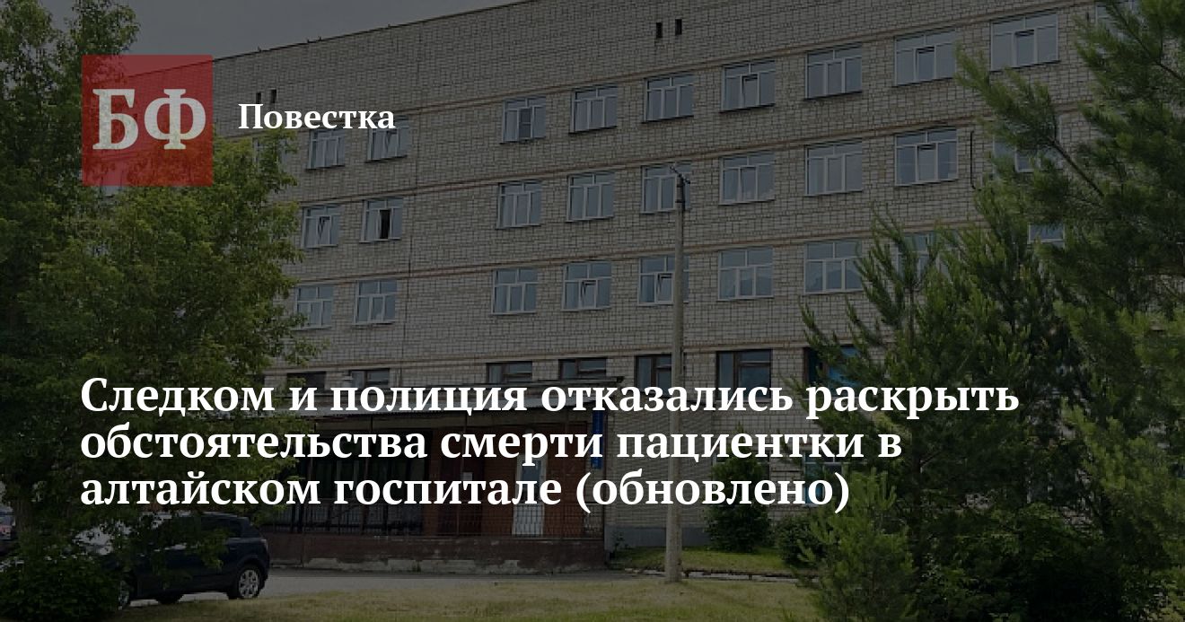 UPD 19:35: Минздрав Алтайского края подтвердил ИА «Банкфакс» факт обнаружения тела в ковидном госпитале Каменской ЦРБ. «В настоящее время правоохранительными органами проводятся следственные мероприятия», — отметили в ведомстве.
