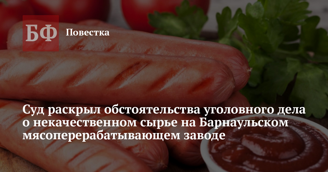 Индустриальный районный суд приступил к рассмотрению уголовного дела бывшего ветврача КГБУ «Управление ветеринарии государственной ветеринарной службы Алтайского края по Барнаулу» Алексея Якубы. Как полагает следствие, именно он допустил на ООО «ПК «Барнаульский мясоперерабатывающий завод» (БМПЗ) больше 48 тонн технических субпродуктов, совсем непредназначенных для использования в производстве пищевых продуктов. Тем не менее, все они пошли в дело — из них, как говорит сам Якуба, делали ливерную колбасу, которую затем продавали потребителям. Руководство завода утверждает, что было не в курсе преступной схемы, хотя именно директор БМПЗ Денис Бондарев просил Якубу подыскать сырье подешевле.