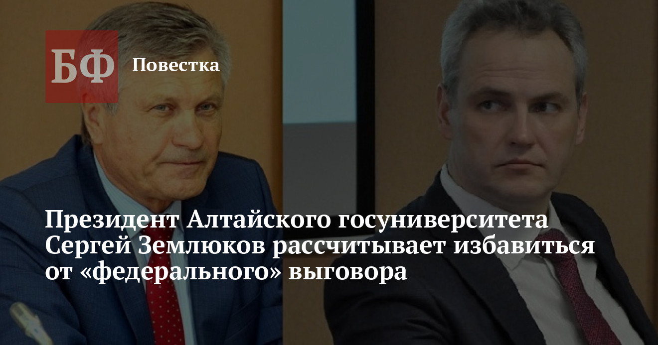 Ректору Алтайского государственного университета Сергею Бочарову предложили от имени вуза обратиться в Минобрнауки РФ в поддержку президента учреждения Сергея Землюкова, которому ранее был объявлен выговор по федеральной линии. По сведениям источников ИА «Банкфакс», инициатива исходила от сторонников последнего — так они пытаются помочь ему снять дисциплинарное взыскание. Однако, как сообщают инсайдеры, Бочаров в этом участвовать отказался. По этой причине судьба и текущий статус данного обращения пока неизвестны. Редакция обратилась за разъяснениями к проректору по цифровой трансформации и медиакоммуникациям АлтГУ Максиму Герасимюку, однако получить от него комментарий в течение суток не удалось.