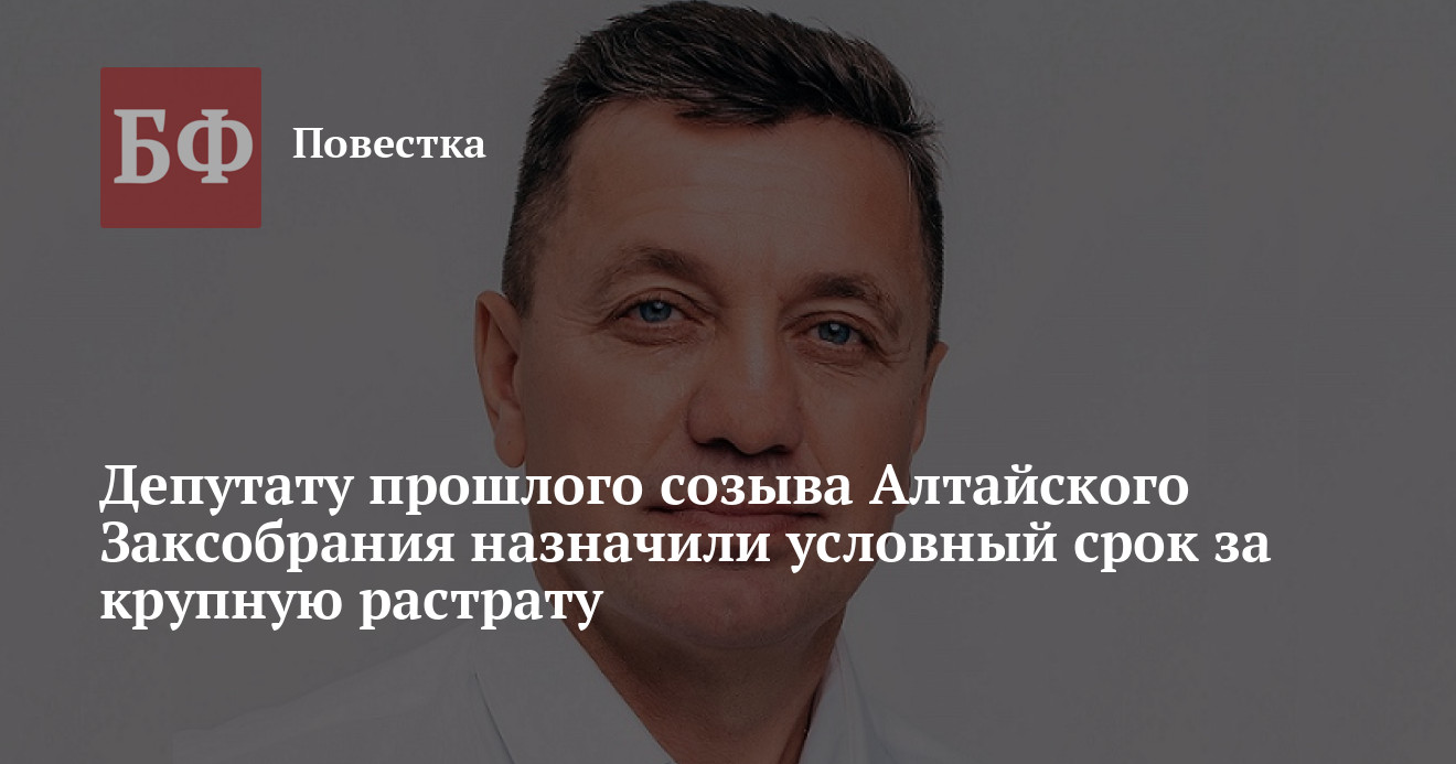 В Алтайском крае вынесли приговор теперь уже бывшему начальнику ГУП ДХАК «Северо-Восточное ДСУ» и депутату АКЗС прошлого 7 созыва Сергею Сивцу. Его признали виновным в присвоении и растрате при реализации дорожного нацпроекта. Экс-парламентарий отделался условным сроком и штрафом, сообщает СУ СКР по краю.