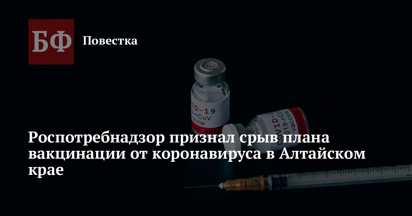 Согласно постановлению главного санитарного врача Алтайского края в версии, принятой в октябре прошлого года, до 22 декабря 2021 года в регионе должны были полностью привить от COVID-19 80% от определенного контингента граждан. Речь шла о работниках сферы услуг, в том числе банковских, ЖКХ, туризма, общественного транспорта, государственные и муниципальные служащие, работники органов власти и МСУ, сотрудники спецслужб, здравоохранения. Также вакцинации подлежали лица старше 60 лет, люди с хроническими заболеваниями и волонтеры. По данным Роспотребнадзора на 28 декабря, то есть уже после финальной даты, иммунизацию от ковида прошли лишь 98,9% из лиц от указанных категорий.