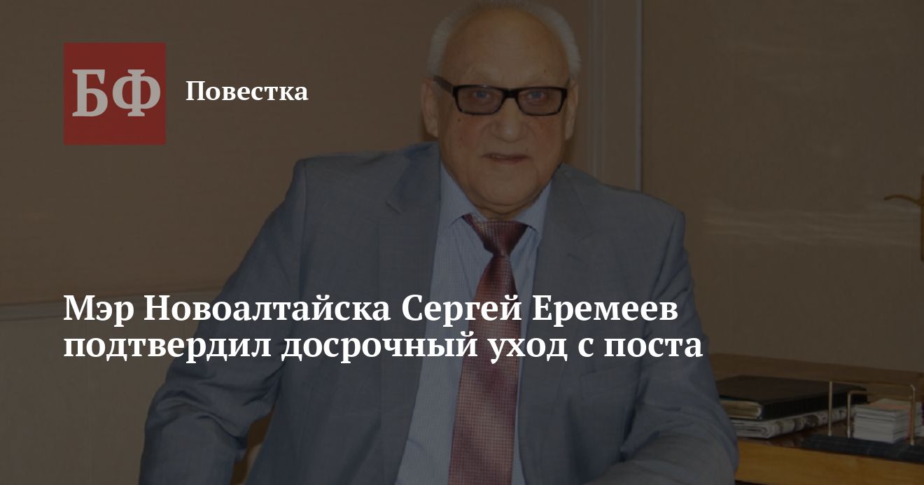 Глава Новоалтайска Сергей Еремеев написал заявление о сложении полномочий. Эту информацию он подтвердил ИА «Банкфакс». Нового градоначальника могут избрать осенью после выборов в новый созыв Горсобрания.