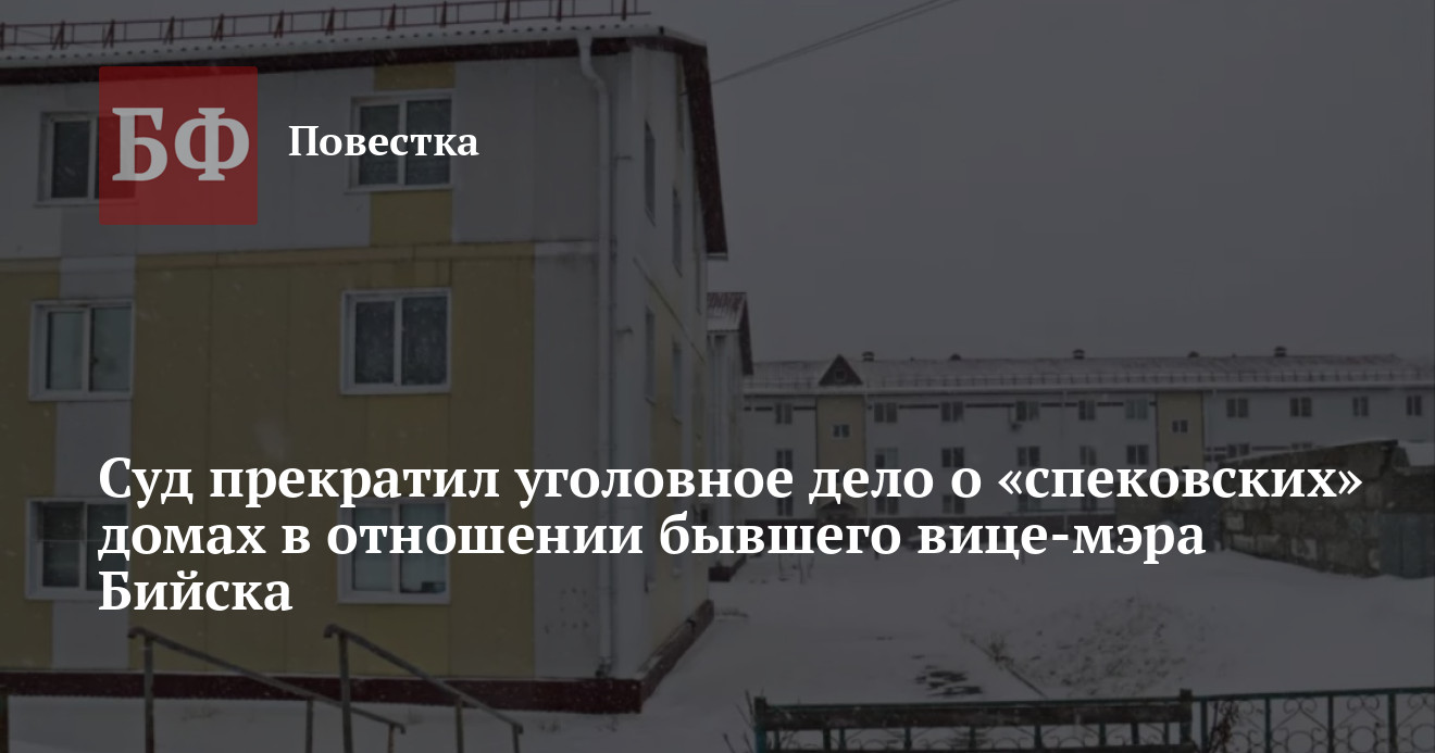 Напомним, что печально известные многоквартирные дома на улице Спекова в Бийске (№ 8, 8/1 и 8/2) были сданы в декабре 2012 года, и сразу после окончания стройки люди начали жаловаться на серьезные дефекты. В первую же зиму в новых энергоэффективных домах жильцы замерзали: стены квартир были покрыты слоем инея, на оконных рамах изнутри лежал снег, круглосуточно работали обогреватели. В начале 2016 года дефективные дома оценил председатель наблюдательного совета государственной корпорации «Фонд содействия реформированию ЖКХ» Сергей Степашин. Он назвал это «худшим вариантом худшей казармы худшего стройбата 1970-х годов».