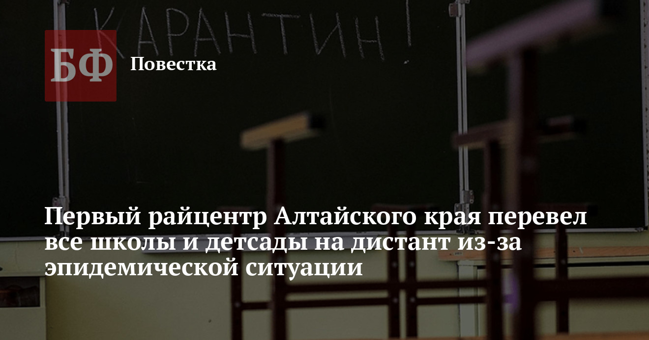 В то же время 31 января замминистра образования и науки Алтайского края Галина Синицына говорила, что на тот момент в регионе в общей сложности перевели на дистант 11 школ из-за эпидемической ситуации по COVID-19 и ОРВИ. В смешанном режиме обучение ведут в 409 школах, то есть для 19% учащихся. В детских садах Алтайского края перевели на карантин 4% детей, в средних профессиональных учреждениях образования удаленно обучаются 4% студентов. Очевидно, что эти цифры на момент публикации могут быть не вполне актуальными, поскольку, как отмечала Синицына, каждое образовательное учреждение самостоятельно определяется с формой обучения — очная или дистанционная — по проценту отсутствующих по болезни детей. «Если около 20% детей нет, школа переводится на удаленное обучение. У нас большее количество заболевших детей конечно в городах, особенно в Барнауле. Поэтому нам рекомендовали активнее использовать разобщенный режим обучения детей», — объясняла замминистра.