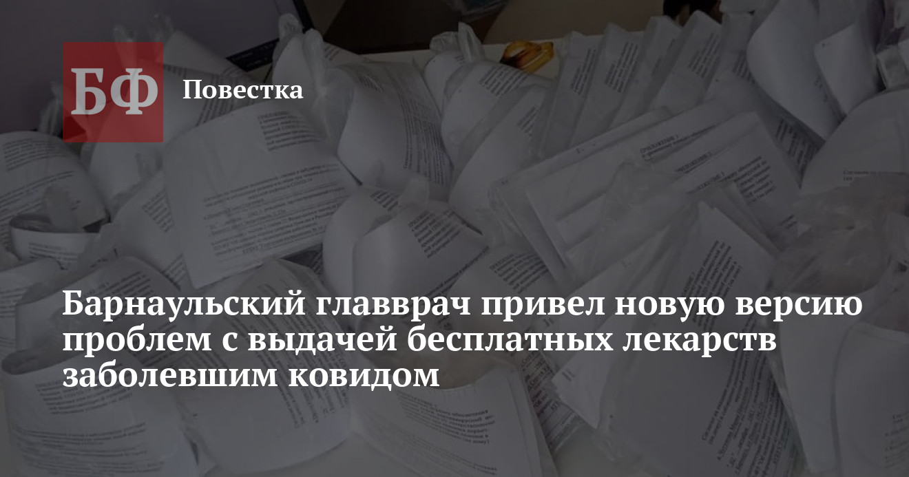 Главврач барнаульской поликлиники № 14 Дмитрий Денисов дал новое объяснение проблемам с обеспечением ковид-инфицированных граждан бесплатными лекарствами. По его словам, для того, чтобы сформировать пакет с препаратами, требуется время, а в выборке сейчас находится большое количество пациентов. В то же время несколько дней назад, когда суточное число инфицированных было в разы меньше и на загруженность просрочки списать было сложно, Денисов писал, что волонтеры в половине случаев якобы не застают больных дома. Как можно предположить из его объяснения, новую версию он обнародовал после потока возмущенных сообщений.