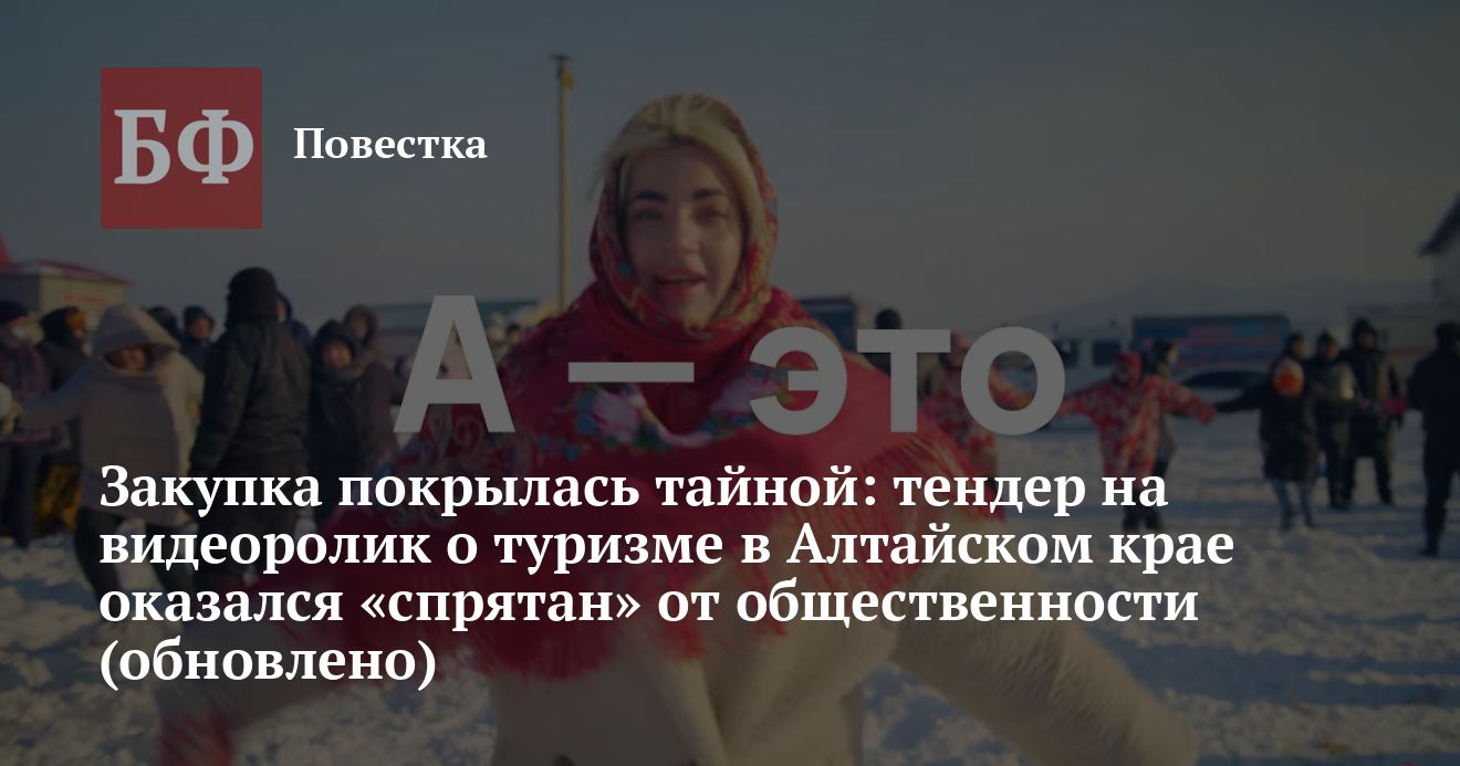 Ранее агентство попыталось выяснить условия, на которых с индивидуальным предпринимателем Данилом Снитко был заключен контракт на создание нового промо-ролика о туристической привлекательности региона «А — это Алтайский край». Однако ни на портале Госзакупок, ни на какой-либо другой площадке упоминаний о соответствующей конкурсной процедуре не нашлось. «Банкфакс» обратился за разъяснениями в региональное управление по развитию туризма и курортной деятельности, где на запрос агентства сообщили и номер контракта, и дату его заключения. Конкурсная процедура и заключение договора осуществлялись с использованием подсистемы региональной информационной системы Алтайского края в сфере закупок «АИС Госзаказ» — «Портал поставщиков Алтайского края», где по указанным параметрам закупку найти также не удалось.