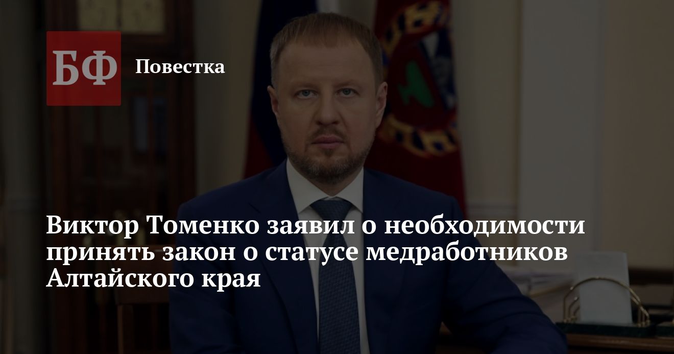 В Алтайском крае разрабатывается законопроект о статусе медицинского работника. На своей странице «ВКонтакте» глава региона Виктор Томенко отметил, что документ даст уверенность сотрудникам учреждений здравоохранения в том, что они не останутся без государственной поддержки.