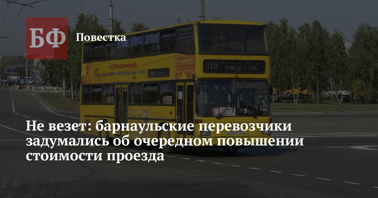 Барнаульские предприниматели, работающие на автобусных маршрутах с нерегулируемыми тарифами, заявили о необходимости повышения стоимости проезда из-за выросших в последние месяцы затрат. Как сообщает пресс-служба мэрии, администрация Барнаула предостерегла перевозчиков от этого шага и «взамен» предложила оказание поддержки. Какую именно помощь город предоставит предпринимателями, станет известно позже.