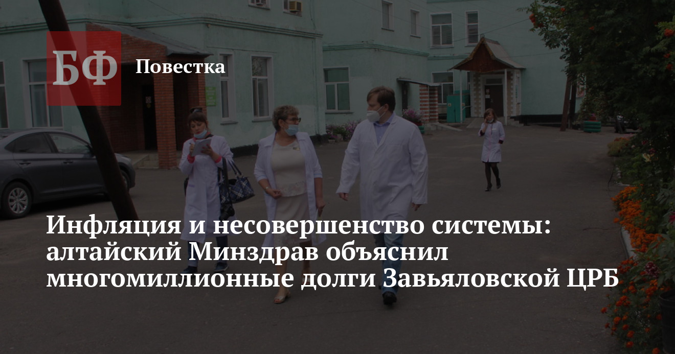В Минздраве Алтайского края объяснили, откуда взялись многомиллионные долги КГБУЗ «Завьяловская ЦРБ» перед налоговиками. Как следует из ответа чиновников на запрос ИА «Банкфакс», печальное финансовое положение больницы якобы связано с несовершенством системы подушевого финансирования и резким ростом расходов на энергоресурсы. Тем не менее, в министерстве уже подготовили план по выходу больницу из долговой ямы.