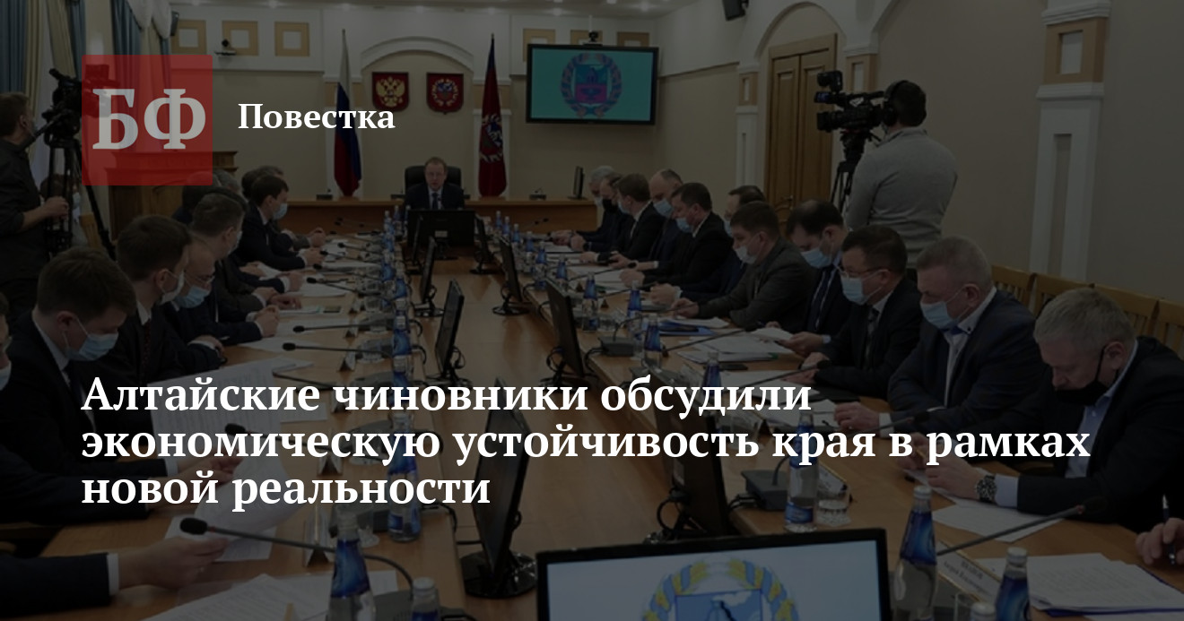 Губернатор также сказал, что все вопросы активно прорабатываются в Москве, а алтайские чиновники пока дают оценки и направляют свои идеи. «На федеральном уровне уже принят первый пакет документов, направленный на повышение устойчивости экономики. 10 марта внесен в Государственную Думу Российской Федерации второй пакет законопроектов. Эта работа на федеральном уровне продолжается. На уровне краевых властей мы оценку ситуации и наши предложения по мерам реагирования в различных сферах деятельности направляем в соответствующие федеральные органы власти где-то в еженедельном, а где-то уже в ежедневном режиме», — подчеркнул Томенко.