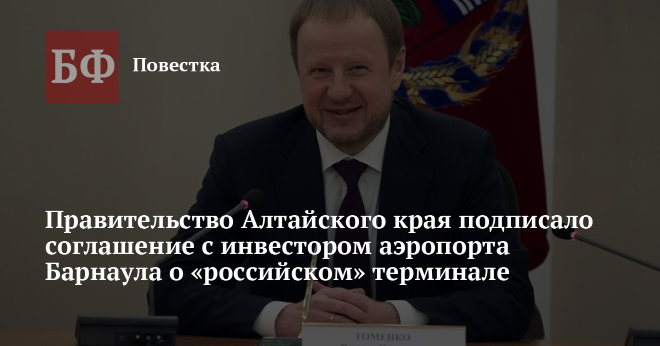 14 марта в Алтайском крае состоялась церемония подписания инвестиционного проекта о развитии и реконструкции аэропорта Барнаула между правительством региона и холдингом «Новапорт». В своем выступлении губернатор Виктор Томенко отметил, что проработка условий соглашения велась долго и скрупулезно. За это время началась пандемия ковида, которая нанесла серьезный удар по отрасли авиаперевозок и привела к падению пассажиропотока. В связи с этим показатели деятельности обслуживающего аэровокзал АО «Авиапредприятия «Алтай» значительно снизились в 2020 году. По мнению главы региона, заниматься перераспределением акционерного капитала и реализацией крупных вложений в этот период было бы несвоевременно и некорректно. В 2021 году наблюдалось возвращение к докризисным результатам по потоку пассажиров на уровень свыше 500 тысяч, но в финансовом плане еще оставались нерешенные вопросы.