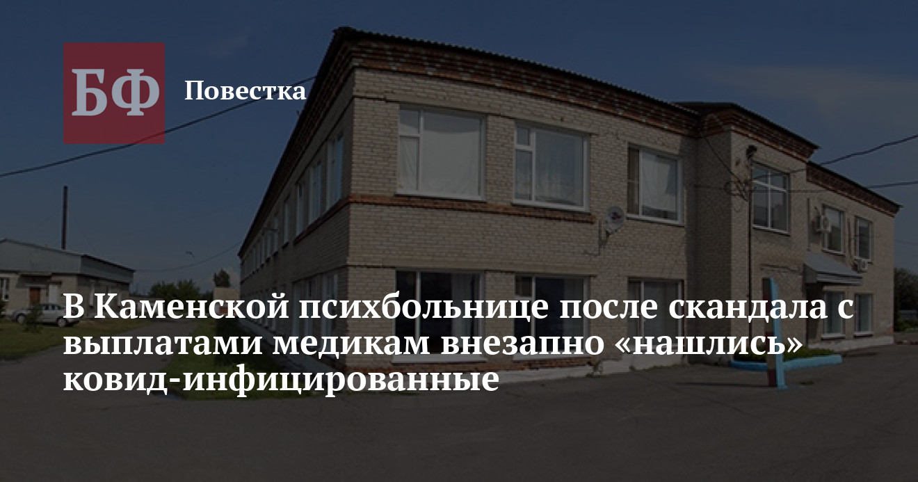 Сотрудники КГБУЗ «Алтайская краевая психиатрическая больница № 2» в Камне-на-Оби все же получат выплаты за работу с ковид-инфицированными пациентами, несмотря на то, что еще месяц назад в Минздраве Алтайского края утверждали, будто в учреждении не было зафиксировано ни одного случая заболевания с ноября 2020 года. Сейчас в ведомстве продолжают настаивать, что до настоящего момента страховых случаев в больнице не было.