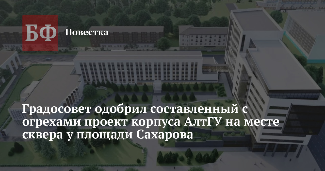 В Барнауле градосовет 23 марта с третьей попытки утвердил проект нового корпуса АлтГУ на месте сквера на площади Сахарова, несмотря на то, что здание слишком крупное и превышает нормативные показатели, пишет «Толк». Как следует из публикации, указания архитекторов на нарушения не повлияли на мнение проектировщиков, чиновников и депутатов, некоторые из которых упирали на необходимость поскорее освоить на стройке федеральные деньги. С их стороны прозвучал аргумент о том, что критичность огрехов все равно проверит госэкспертиза. После градосовета уже появились предположения о вероятности скорых протестов горожан.