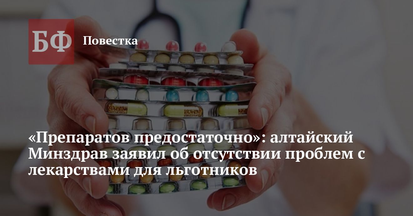 В первую очередь агентство интересовалось у Минздрава, какой объем льготных препаратов от необходимого на год был закуплен в регионе. В ведомстве заявили, что медикаментов хватит на девять месяцев. «Для обеспечения льготных категорий граждан Минздрав Алтайского края заблаговременно, в конце 2021 года, провел закупочные процедуры и законтрактовал 75% денежных средств. Этих лекарственных препаратов предостаточно, чтобы обеспечить всех льготников по сентябрь 2022 года включительно. На оставшиеся средства производятся закупочные процедуры, заключаются контракты. Каких-либо отказов от заключения контрактов и отказов от поставок на данный момент не было», — рассказал Тарас Хамрилов. Он добавил, что все льготные препараты, закупаемые Минздравом, входят в перечень жизненно важных, цены на которые регулирует государство. В течение года их стоимость остается неизменной.