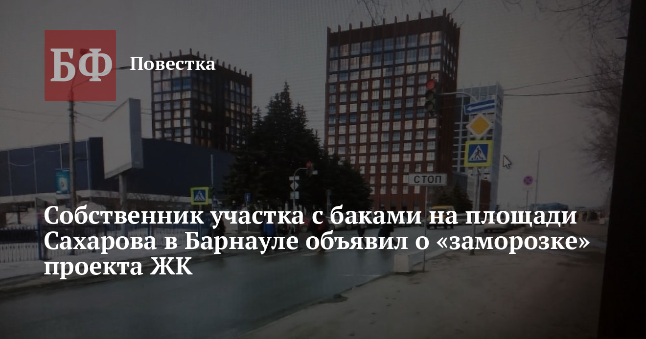 Проект большого жилого комплекса на проспекте Социалистическом, 97, на площади Сахарова, где ранее располагался парк «Барнаульская крепость», не будет реализован в ближайшее время. Как сообщает ИА «Амител», собственник участка решил поставить его на паузу в связи с наступлением новой реальности.