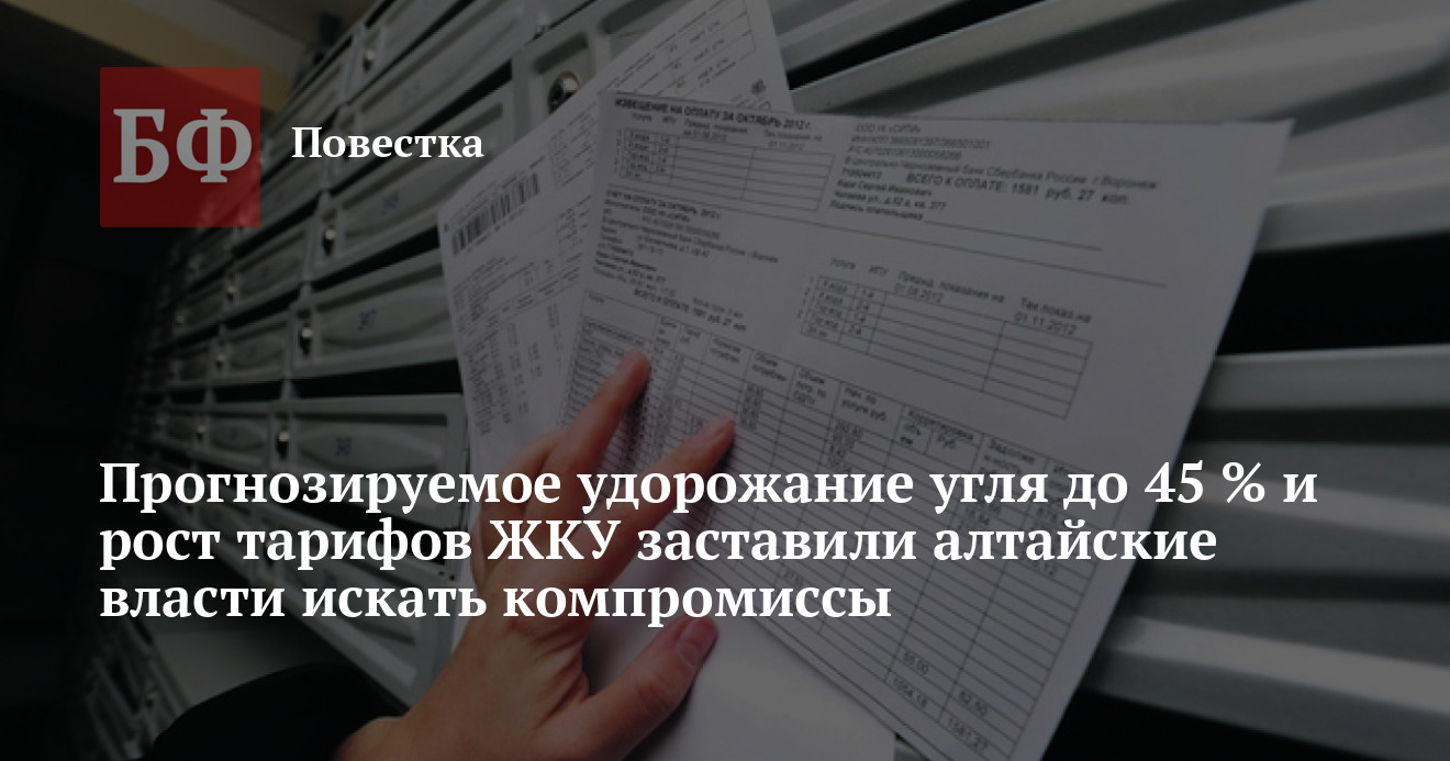 Вопрос увеличения коммунальных расходов жителей края был поднят в Алтайском Заксобрании на правительственном часе с министром строительства и ЖКХ Иваном Гилевым 30 марта. Одной из тем его выступления стала ситуация с нехваткой угля для нужд населения и ростом его стоимости, которая наблюдалась в начале текущего отопительного периода. Серьезные проблемы в прошлом году возникли на фоне перебоев с поставками в некоторых муниципалитетах региона, связанных с рыночными условиями и логистикой, а также нерасторопностью местных властей, но в итоге их удалось решить. В частности, приведшим к этому фактором стало удорожание топлива на рынке, при котором поставщикам было не выгодно сотрудничать с сельскими территориями по старым ценам, которые устанавливались в муниципальных контрактах.