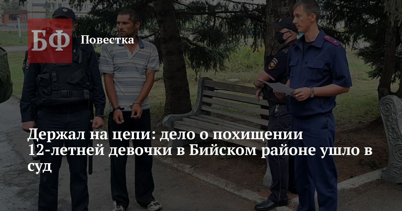 Прокуратура передала в суд материалы уголовного дела в отношении 40-летнего жителя Бийского района Олега Лавкина, который, как полагает следствие, летом 2021 года похитил 12-летнюю девочку и удерживал ее в подвале. Как уточняет СУ СКР по Алтайскому краю, мужчина признал вину. Кроме того, приводятся подробности преступления: обвиняемый держал подростка на цепи. Между тем из перечня статей и описания события исчезло упоминание о совершении иных действий сексуального характера в отношении потерпевшей.