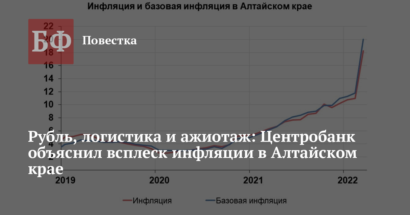 Напомним, что в марте Алтайский край продолжил обгонять Россию и Сибирь по инфляции. В целом по стране она составила 16,7%, а по округу — 18,26%.