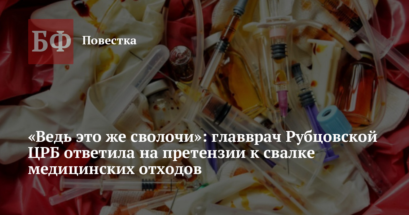 Житель Рубцовска наткнулся на свалку со шприцами и пробирками для анализов крови, а также другими медицинскими отходами возле местной ЦРБ. Об этом он рассказал Telegram-каналу Mash Siberia. Ситуацию уже неоднозначно прокомментировала руководитель медучреждения Людмила Кравцова, по словам которой ситуация длится всего пару дней, и во всем виноваты строители, ремонтировавшие крышу, люди, которые разбросали мусор, и нехватка персонала. При этом в распространенной каналом записи разговора она дает резкие оценки людям, но о своей ответственности не говорит.
