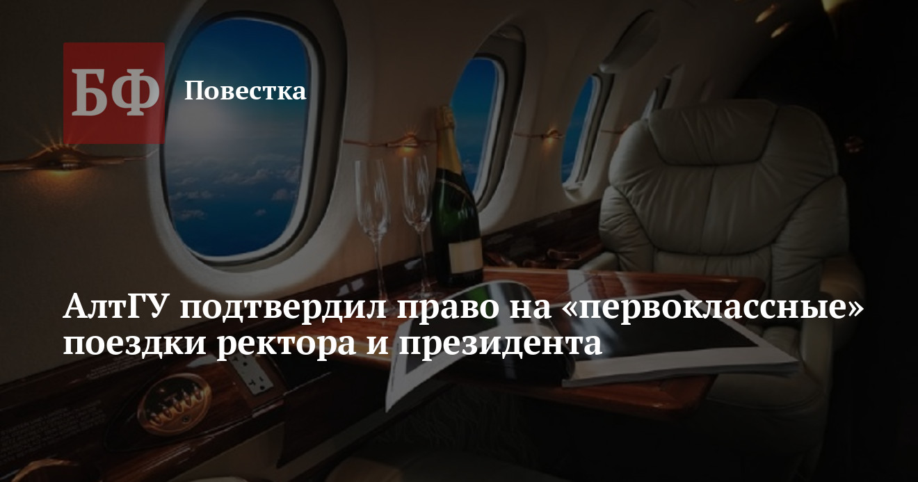 Комфортные путешествия руководства одобряют члены ученого совета АлтГУ. К примеру, на последнем заседании проректор по экономике и стратегическому развитию Александр Малаханов настаивал, что такие условия поездок — не роскошь, а «возможность успеть на важные встречи, а также подготовиться к ним», будто размер кресла в самолете или поезде влияет на скорость передвижения.