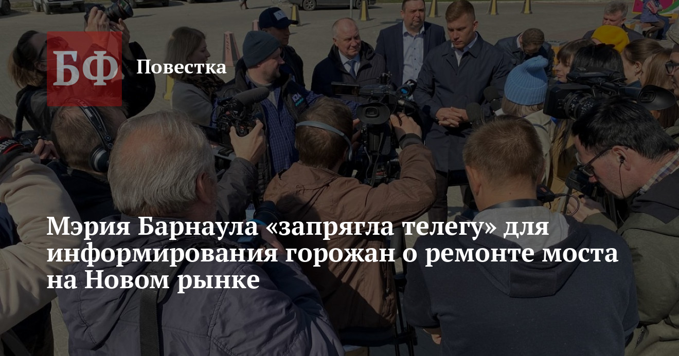 Администрация города совместно с муниципальным изданием «Вечерний Барнаул» решила создать Telegram-канал «Мост», в котором будут освещаться «абсолютно все вопросы» реконструкции путепровода на проспекте Ленина. Первым постом от авторов нового канала стала информация о пресс-туре, который прошел 26 апреля непосредственно на самом мосту. При этом редакцию «Банкфакса» об этом мероприятии по какой-то причине не уведомили.