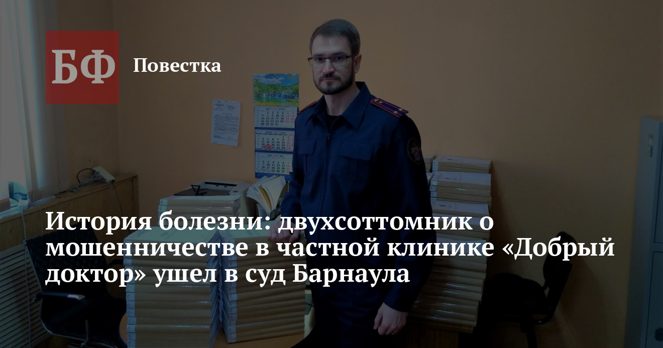 В Алтайском крае завершили расследование масштабного уголовного дела в отношении главврача барнаульской частной клиники «Добрый доктор» Сергея Богданова. Как сообщают СУ СКР по Алтайскому краю и прокуратура, его обвиняют в хищении более 100 млн рублей путем махинаций с деньгами ОМС. Эти деньги удалось вернуть после ареста счетов обвиняемых и организации. Два других фигуранта этого дела, один из которых приходится сыном управляющему отделением ПФР в Алтайском крае, еще находятся под следствием.