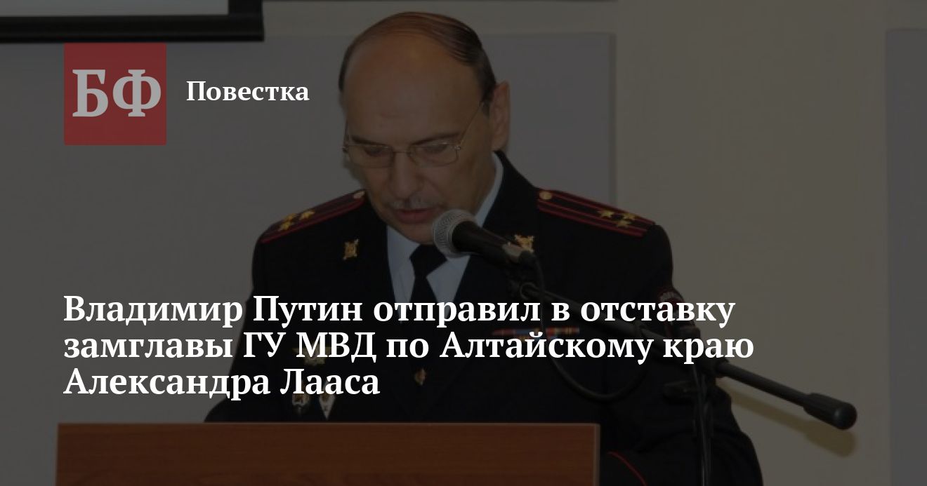 О подписании президентом указа стало известно 1 июня. На официальном интернет-портале правовой информации он еще не был опубликован. Тем не менее, ознакомившиеся с документом источники сообщают, что в нем в том числе говорится об отправлении в отставку замначальника краевого ГУ МВД Александра Лааса. На сайте главка ведомства по Алтайскому краю он все еще указан в должности. О его предполагаемом места работы после ухода с поста не сообщается. Генералу уже 63 года.