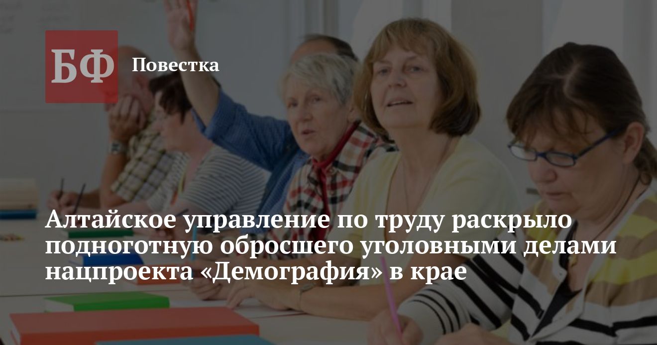 Управление Алтайского края по труду и занятости населения ответило на запрос ИА «Банкфакс» о реализации в регионе блока «Старшее поколение» нацпроекта «Демография». В его рамках граждане предпенсионного возраста проходят профессиональное обучение и получают дополнительное образование. Интерес к этой теме обусловлен «криминальной аурой», окутавшей реализацию нацпроекта в регионе: по сведениям прокуратуры, в Алтайском крае возбуждено четыре уголовных дела, фигуранты в которых — обучающие организации. В ГУ МВД по Алтайскому краю ранее раскрыли некоторые подробности одного из таких разбирательств. По сведениям правоохранителей, обучение предпенсионеров в 19 районах носило формальный характер — подрядчики получали деньги за образовательные услуги, но фактически их не оказывали.