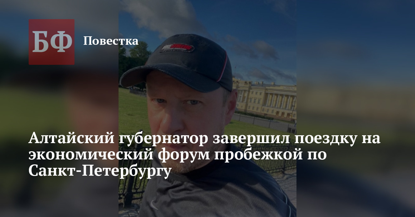 18 июня в Санкт-Петербурге завершился международный экономический форум (ПМЭФ), на котором работала делегация правительства Алтайского края во главе с губернатором Виктором Томенко. На своей странице в «Одноклассниках» он сообщил, что поездка оказалась плодотворной, но времени на знакомство с городом было мало, в связи с чем глава решил устроить пробежку по Северной столице. В ПМЭФ также участвовало представительство Республики Алтай, которое подписало ряд важных соглашений о сотрудничестве.