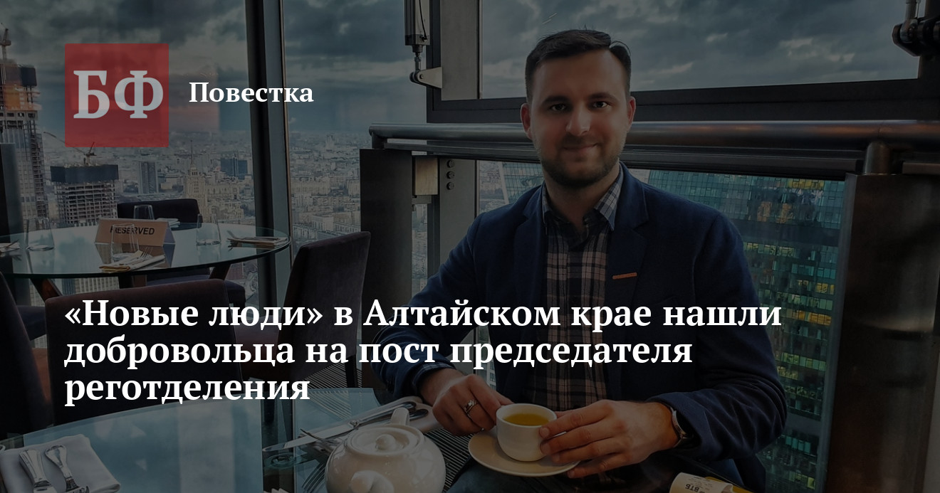 26-летний Никита Федюнин возглавил реготделение 16 июня по итогам общего собрания. В настоящий момент он является президентом регионального благотворительного общественного фонда «Алтайский центр развития добровольчества». «За девять лет работы в сфере добровольчества удалось узнать, понять, прочувствовать проблемы жителей нашего региона. Убежден, что идеи поддержки и взаимопомощи, развития и роста, заявленные в программе партии „Новые люди“ сегодня актуальны как никогда. Они — основа достойной жизни людей», — прокомментировал свое избрание Федюнин.