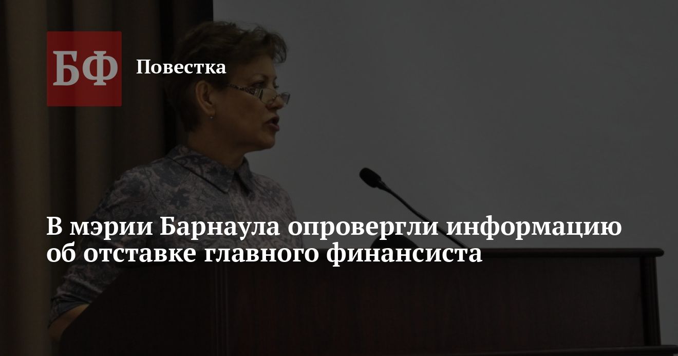 21 июня алтайские Telegram-каналы начали распространять информацию о скорой отставке влиятельной барнаульской чиновницы — руководителя комитета по финансам Надежды Тиньгаевой. Однако в пресс-службе мэрии «Банкфаксу» эти сведения не подтвердили.