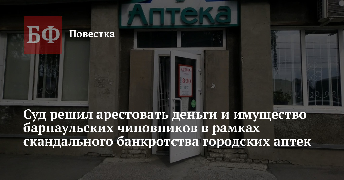 Арбитражный суд Алтайского края частично удовлетворил ходатайство конкурсного управляющего барнаульского АО «Аптека № 132», акционером которого является мэрия, об аресте средств и имущества бывших и действующих сотрудников администрации краевого центра. Заявление подано в рамках банкротства компании. Как следует из документов, управляющий Михаил Андреев пытается привлечь чиновников к субсидиарной ответственности по обязательствам аптеки, взыскав с них средства для погашения долгов предприятия — согласно материалам дела, власти могут быть ответственны за финансовое состояние должника. Решение по аналогичному заявлению в рамках банкротства АО «Аптека № 306» пока не опубликовано.