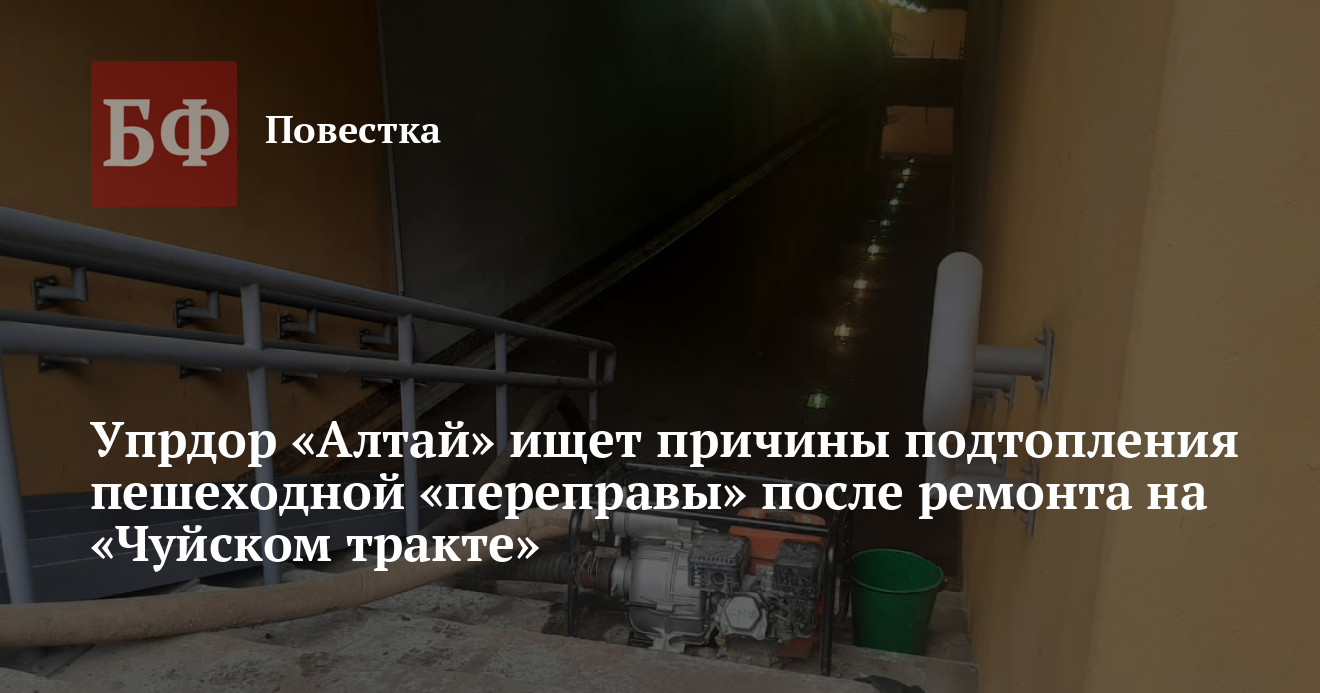Упрдор «Алтай» совместно с подрядчиком и проектировщиком ищет причины, по которым новый подземный переход под «Чуйским трактом» на границе Тальменского и Первомайского районов затопило после дождя. Как сообщает пресс-служба организации, имеющиеся недостатки водоотводной системы планируют исправить за счет подрядчика в рамках гарантии.