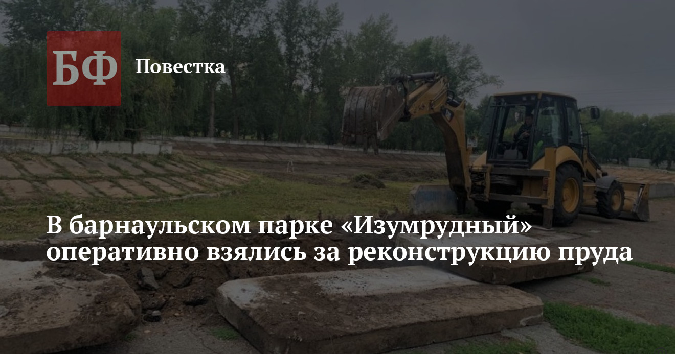 Очередной этап благоустроительных работ начался в барнаульском парке «Изумрудный» в рамках муниципальной программы. 2 августа, буквально на следующий день после подписания контракта, подрядчик приступил к реконструкции пруда, который называют местной достопримечательностью. Несмотря на то, что работы идут всего полдня, изменения уже заметны.