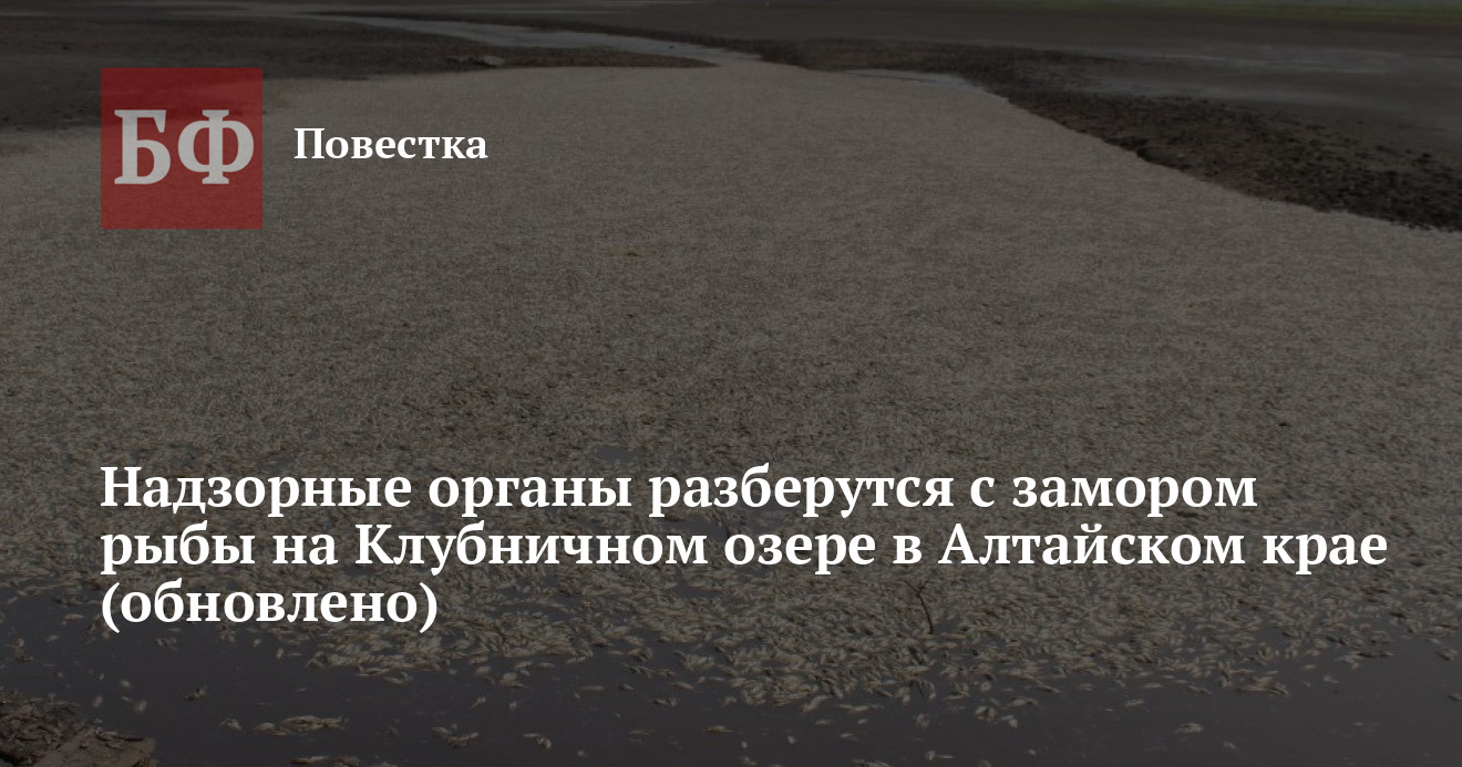 9 августа глава Залесовского муниципального округа Александр Пластеев рассказал, что получил сигнал о заморе рыбы на озере Клубничное. Он отметил, что это происходит не впервые. Судя по опубликованным кадрам, погибли целые косяки рыб. «Уже два года подряд кто-то спускает озеро. Хочу отметить, что гидротехническое сооружение и земли вокруг озера находятся в аренде у ОАО „Залесовское“. Кто-то открывает задвижку. Осенью и вот сегодня мы тоже наблюдаем, вся вода просто уходит. Вся рыба уничтожена», — сообщил руководитель муниципалитета, добавив, что планирует принять меры.