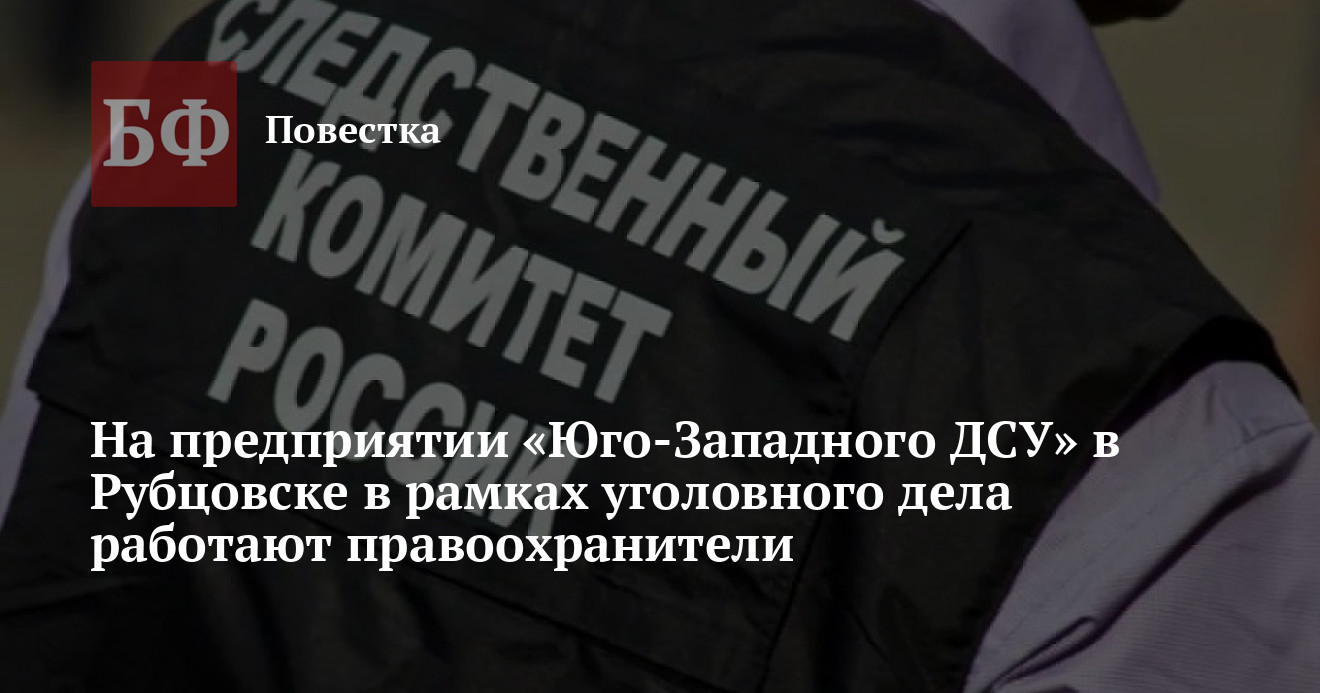 Источники редакции сообщили, что сотрудники силовых структур начали активные действия в ГУП ДХ АК «Юго-Западное ДСУ», базирующемся в Рубцовске. Они предположили, что их работа могла быть связана с задержанием должностного лица предприятия.