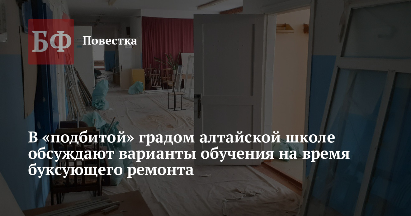 В школе села Назарово Михайловского района, здание которой пострадало от июньского града, обсуждают несколько вариантов организации учебы с 1 сентября ввиду продолжающегося ремонта, который, ориентировочно, завершится лишь к середине сентября. Среди них и дистанционный формат, сообщается на сайте местного комитета по образованию и делам молодежи. Как заявляют власти, большинство родителей учеников с пониманием относится к возникшим трудностям. Директор учреждения подтвердила, что монтаж кровли буксует из-за того, что подрядчик не получил аванс. Ранее публикация ИА «Банкфакс» об этих фактах вызвала бурную реакцию в правительстве.