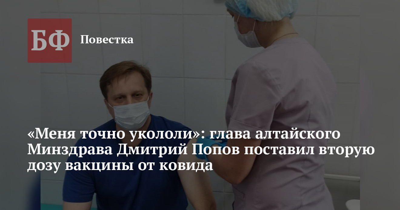 Министр здравоохранения Алтайского края Дмитрий Попов завершил ревакцинацию от коронавируса. Об этом он сообщил в своем Telegram-канале.