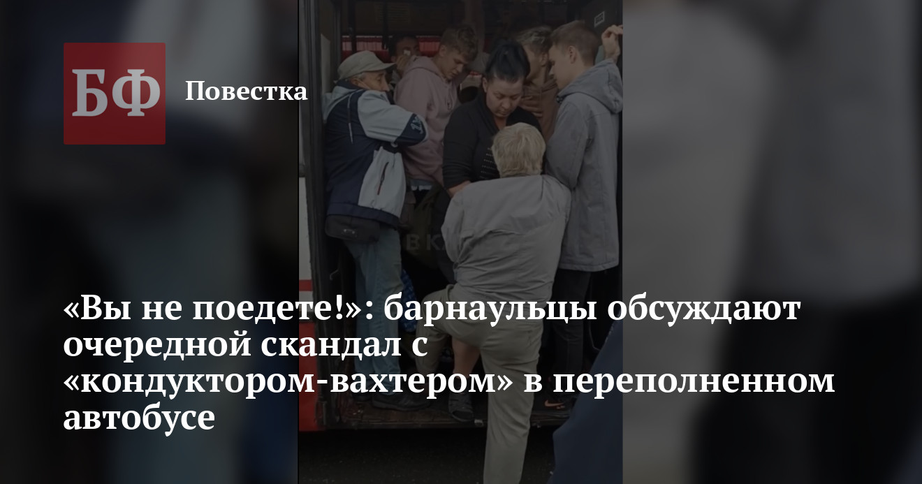 Так, к примеру, автобусы № 20, следуя по маршруту «площадь Спартака -поселок Лесной», набиваются до предела уже в районе площади Октября. Дальше пассажиры страдают от неимоверной давки, а тем, кто ждет автобуса дальше по маршруту, заходить некуда. Свидетельством тому стала ситуация, произошедшая 12 сентября. Подписчик паблика «Инцидент Барнаул» снял на видео, как кондуктор не позволила войти в автобус пожилому мужчине. «Я контролирую наполняемость! Уйдите отсюда! Нет, вы не поедете! Нет, места нет! Да переполненный автобус! Вы что такой есть-то! Э! Убирайте его, ребят, пожалуйста. Некуда! Вы не поедете никуда! Убирайте руки! Не задерживайте автобус!» — слышны на записи восклицания кондуктора. Настойчивому мужчине, который долго не оставлял попыток преодолеть сопротивление, в результате пришлось отступить. При этом некоторые другие люди, как можно подумать по записи, зашли беспрепятственно. Позже видео разлетелось по Сети.