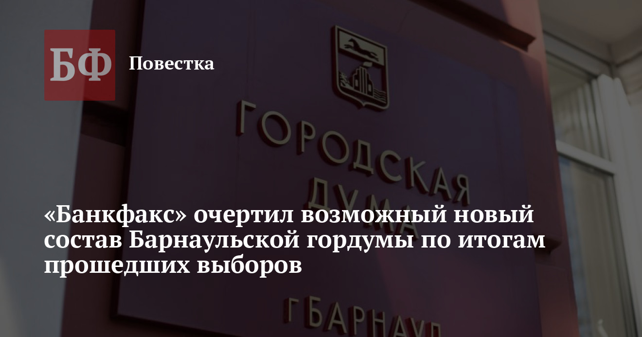 Несмотря на то, что избирком уже подвел окончательные итоги прошедших муниципальных выборов в Алтайском крае, новый состав Барнаульской гордумы до конца еще не ясен. Если с будущими депутатами, избравшимися по одномандатным округам, все очевидно, то имена тех, кто пройдет в представительный округ по спискам, еще не оглашались. «Банкфакс» спрогнозировал будущий состав БГД на основе данных ГАС «Выборы».
