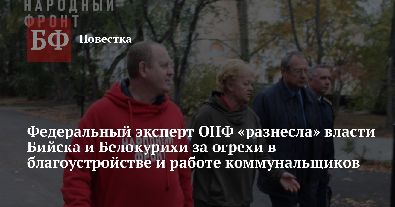 Целый шквал критики обрушился на представителей администраций Бийска и Белокурихи, а также надзорных органов со стороны эксперта Общероссийского народного фронта (ОНФ) Светланы Калининой, которая сейчас работает в Алтайском крае. 15 сентября она побывала в этих городах с проверкой реализации нацпроекта «Жилье и городская среда». Как следует из видеоотчетов алтайских «фронтовиков» на их страницах в соцсетях, «ревизор» осталась недовольна увиденным. В наукограде Калинина даже потребовала возбудить уголовное дело по результатам мониторинга игрового комплекса для детей-инвалидов.