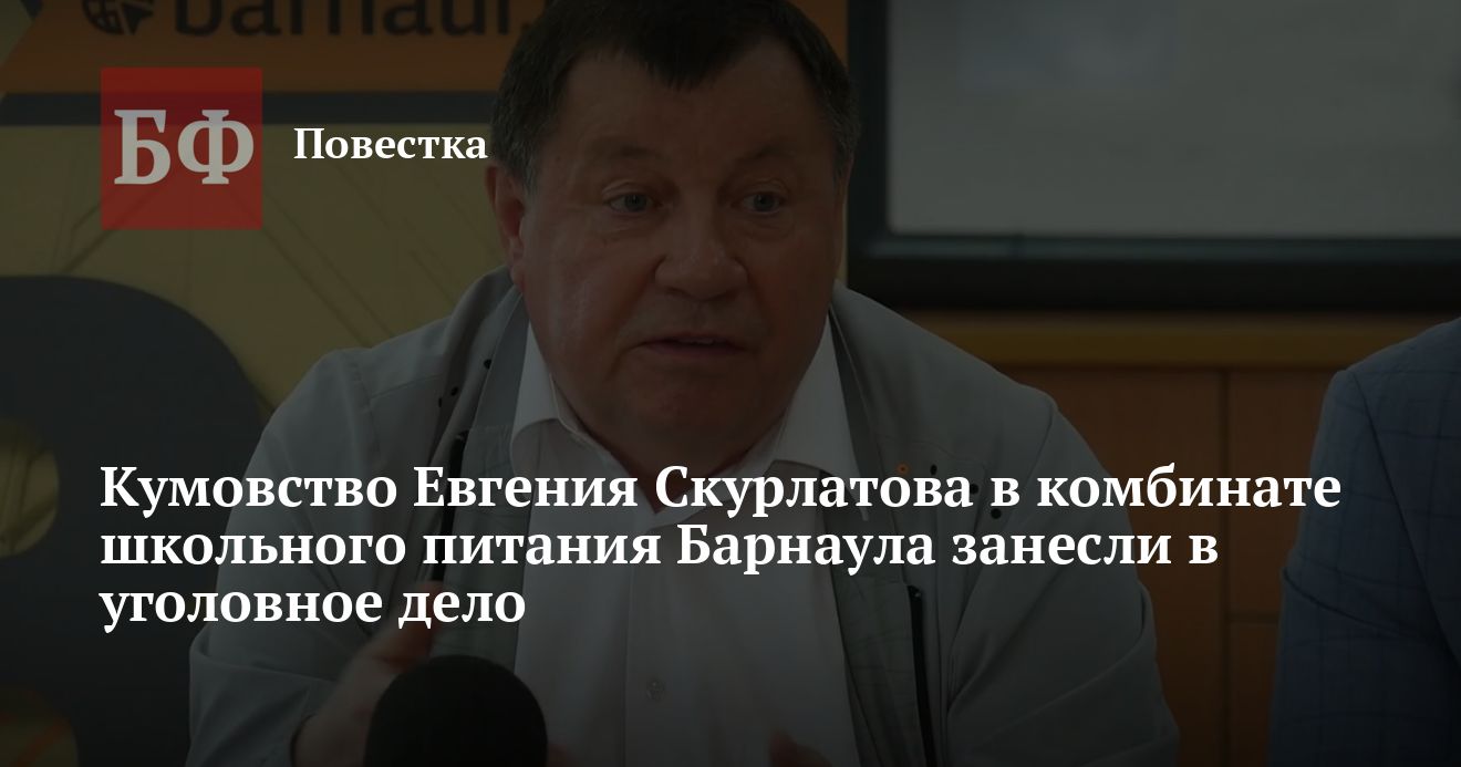 Следком возбудил уголовное дело в отношении бывшего гендиректора АО «Комбинат школьного питания — Глобус» Евгения Скурлатова. По данным следствия, в 2016—2021 годах он заключил несколько договоров с рядом компаний, которые возглавляли его близкие родственники. Их условия для общества, которым владеет комитет по управлению муниципальной собственностью Барнаула, были заведомо невыгодными. Речь шла о поставках продуктов для школьных обедов по завышенной стоимости, в связи с чем готовые блюда росли в цене. В результате злоупотребления должностными полномочиями КШП и городу был причинен имущественный ущерб на сумму более 6 млн рублей.