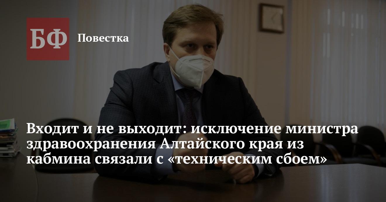 Входит и не выходит: исключение министра здравоохранения Алтайского края из кабмина связали с «техническим сбоем»
