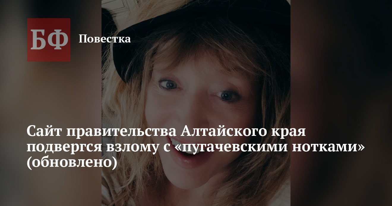19 сентября на сайте правительства Алтайского края появилась публикация, в которой сообщалось о позиции российской примадонны Аллы Пугачевой относительно признания ее супруга Максима Галкина иноагентом. В пресс-службе кабмина и Минцифры «Банкфаксу» пояснили, что эта публикация якобы является следствием взлома. Власти уже обратились по данному поводу в правоохранительные органы.