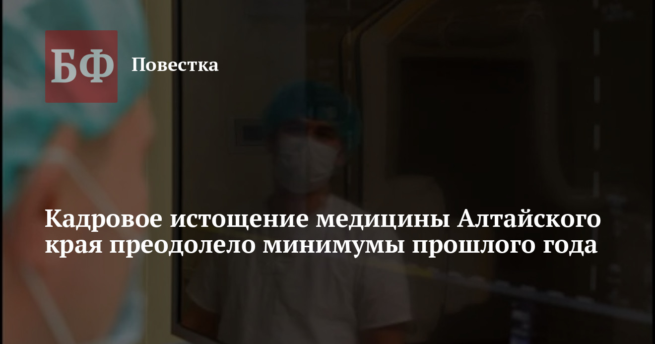Так, на конец августа 2021 года в медорганизациях Алтайского края (за исключением частных) работало 8058 врачей и 21 174 сотрудников среднего медперсонала. Укомплектованность медицинских учреждений края врачами составляла 67,5%, средним медперсоналом — 77%. По обеим категориям фиксировалось падение на протяжении последних нескольких лет, причем с учетом баланса трудоустройства новых работников и увольнения старых. Тогда глава Алтайского края обратил особое внимание и на то, что обеспеченность населения врачами самая низкая за последние 30 лет: если в 2020 году на 10 тысяч жителей региона их было 36 то в 1990 году — 38,4. Впрочем, этот показатель в скором времени может выправиться за счет ускоренного сокращения численности населения края.