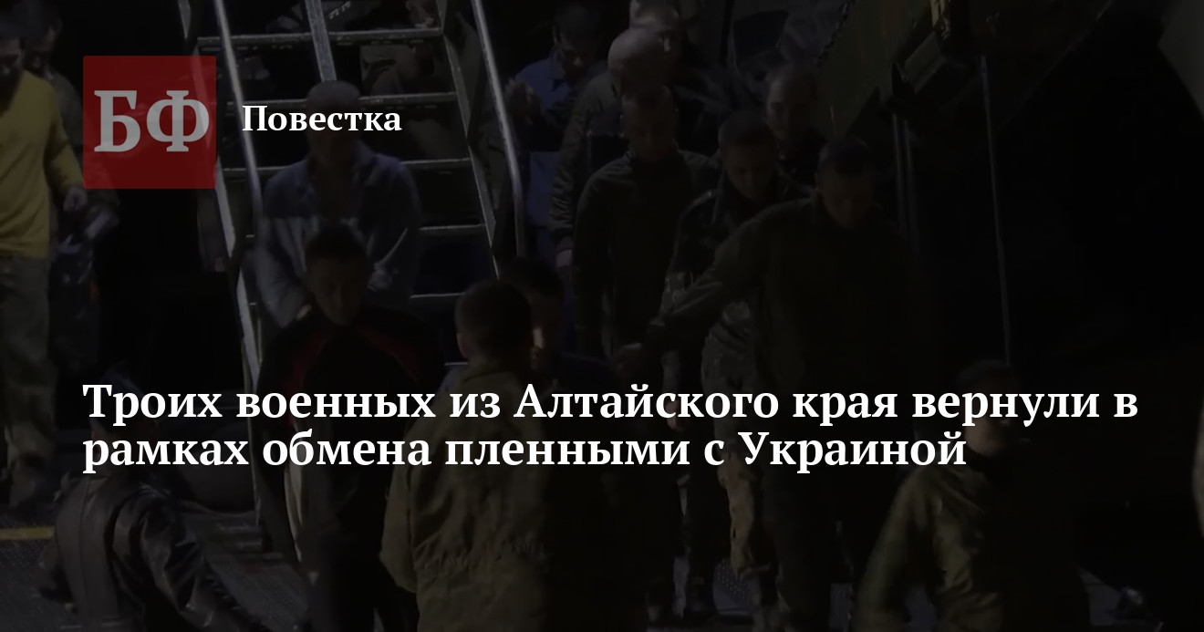 В рамках спецоперации три уроженца Алтайского края были возвращены на Родину после обмена военнопленными с Украиной. Об этом рассказал уполномоченный по правам человека в регионе Борис Ларин, сообщает ГТРК «Алтай».
