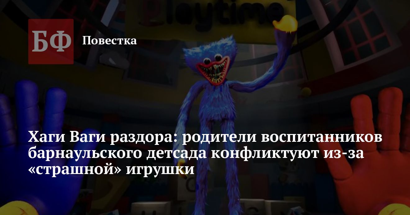 В публичную плоскость вышел конфликт между родителями воспитанников одного из детских садов Барнаула. Как рассказывают журналисты ГТРК «Алтай», взрослые конфликтуют из-за игрушек в виде персонажей хоррор-игры Хаги Ваги, его подружки Киси Миси и прочих монстров. Часть родителей считает, что играть с ними можно, а другая настаивает, что они вредны для деткой психики и их нужно запретить. Инициатором конфликта, безапелляционно выступившим против «кровожадных» игрушек, стала Татьяна Соболева, которую СМИ представили как эксперта краевой Общественной палаты по защите детей, семьи и традиционных семейных ценностей. В прошлом она была одним из лидеров движения «Патриоты Великого Отечества» (ПВО) в Алтайском крае, известного своими акциями, к примеру, против телеканала ТНТ и электронных паспортов.
