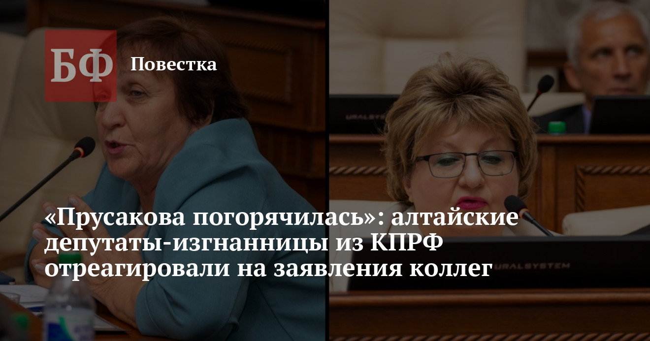 Надежда Дрюпина и Елена Хрусталева прокомментировали решение бюро крайкома КПРФ об исключении их из партии и фракции в Алтайском Заксобрании. В беседе с «Банкфаксом» обе сказали, что не согласны со столь жестким решением руководства и продолжают настаивать на необходимости поддержки проекта краевого бюджета. Также депутаты ответили на приглашение сочувствующих «Коммунистов России» о вступлении в их объединение.