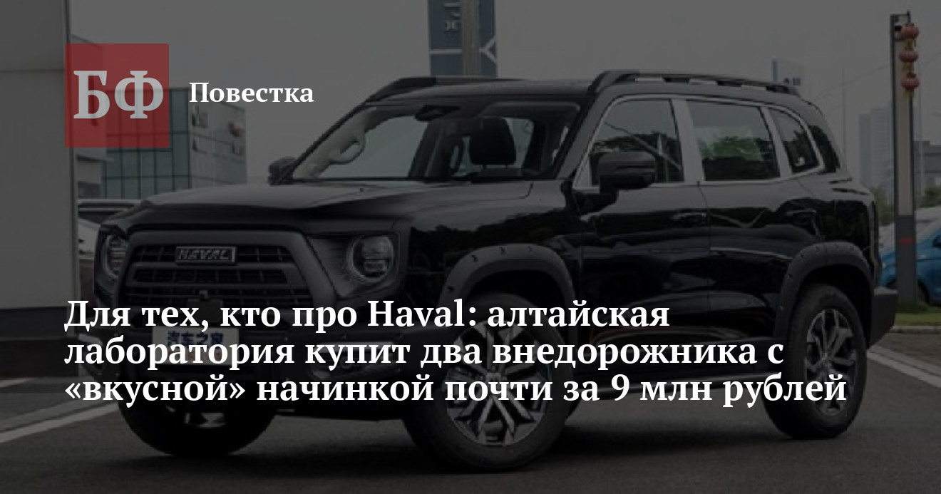 Алтайский краевой Центр лабораторного анализа и технических измерений (ЦЛАТИ), подведомственный Росприроднадзору, решил приобрести дорогостоящие автомобили. По данным портала Госзакупок, специалистам организации потребовались два внедорожника Haval Dargo в комплектации с подогревом всех сидений, функцией массажа, креплением для детского кресла и кожаным салоном. На них выделили почти 9 млн рублей.