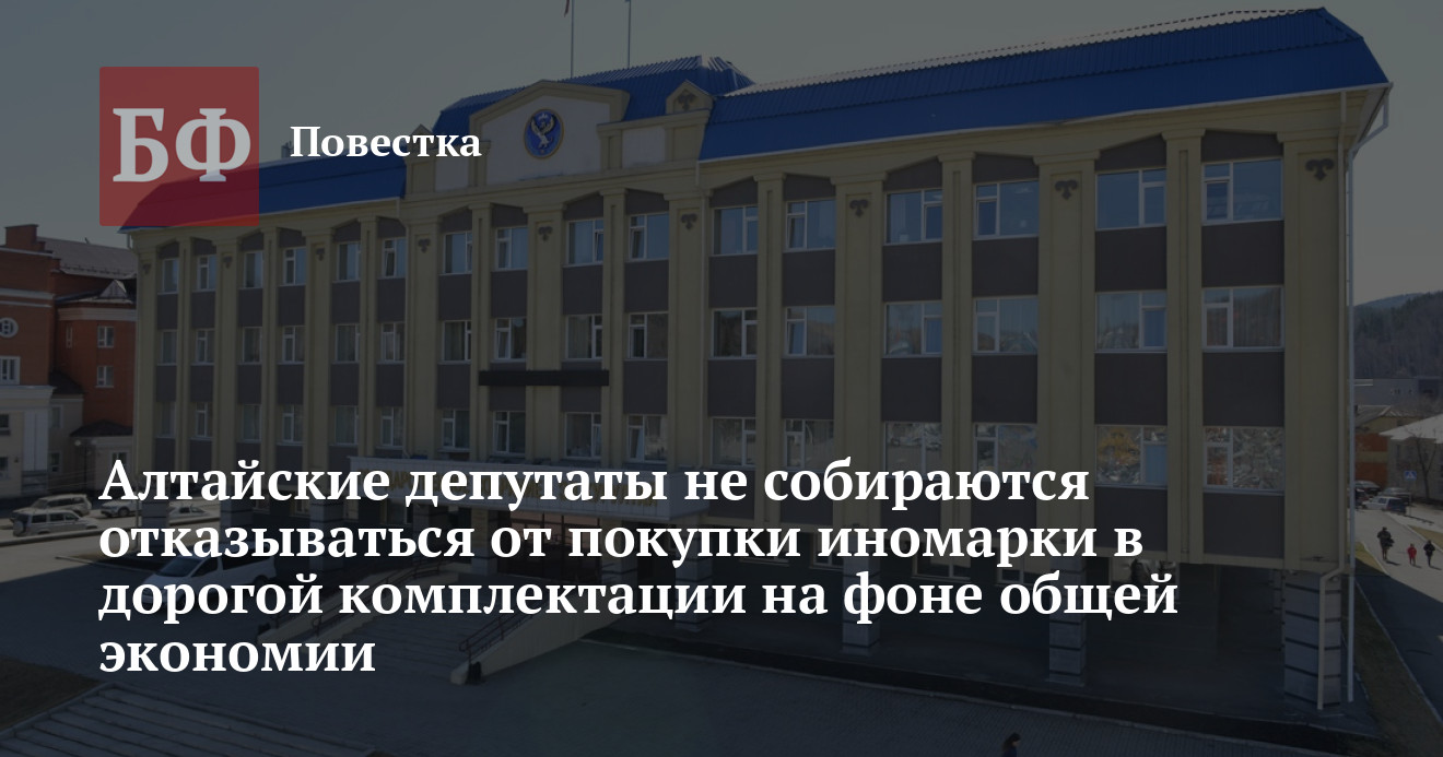 Госсобрание Республики Алтай не будет отменять закупку на поставку автомобиля для своих нужд, чья цена из-за дорогой комплектации почти вдвое превысила базовую. При этом с деньгами на капремонт большого зала парламента депутаты расстались довольно легко и непринужденно, решив направить их на выплаты мобилизованным из РА резервистам.